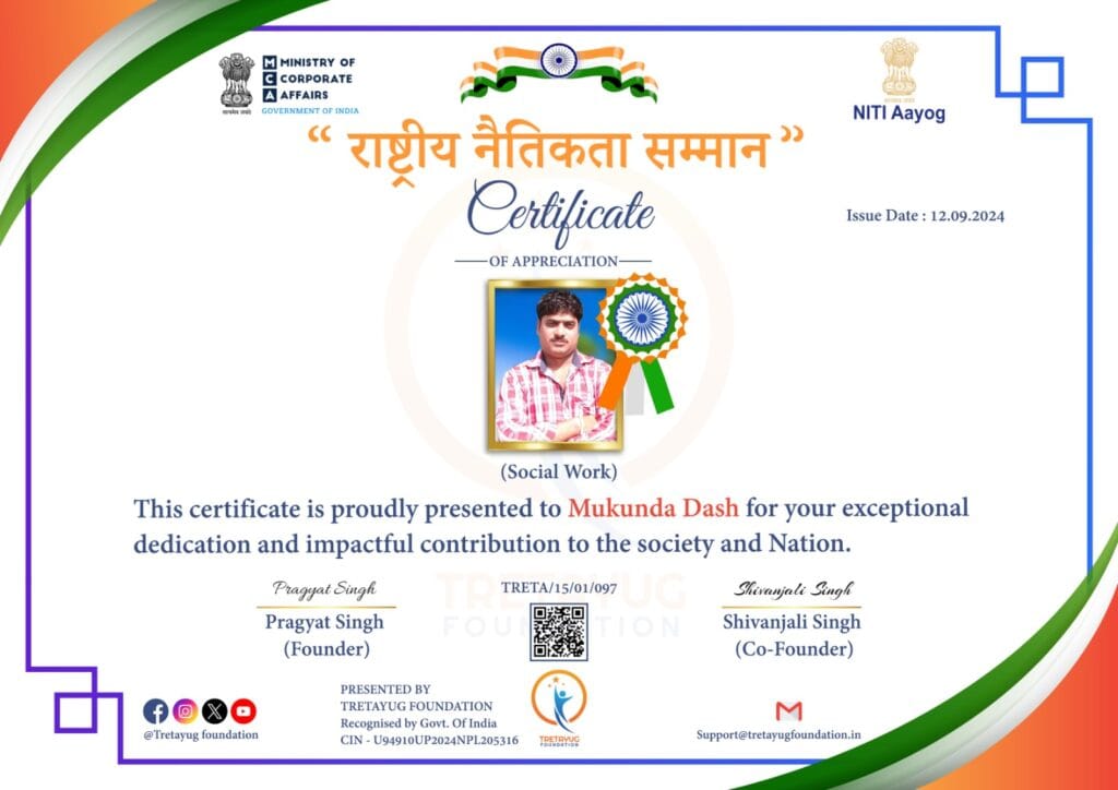 ପ୍ରକାଶ ଥାଉକି ଜନ କଲ୍ୟାଣ ସେବା ଟ୍ରଷ୍ଟର ସେବା କାର୍ଯ୍ୟ ପାଇଁ ଏହି ସମ୍ମାନ ପ୍ରଦାନ କରାଯାଇଛି ବୋଲି ମୁକୁନ୍ଦ ଦାଶ ସୂଚନା ପ୍ରଦାନ କରିଛନ୍ତି।ଏହି ସମ୍ମାନ ଡାକ ଯୋଗେ ତଥା ଇ-ମେଲ ମାଧ୍ୟମରେ ସମ୍ମାନ ପତ୍ର ଆଜି ପହଞ୍ଚିଛି ବୋଲି ଶ୍ରୀ ଦାଶ ଜଣାଇଛନ୍ତି ଏହି ସମ୍ମାନ ପାଇଁ ମୁକୁନ୍ଦ ବରଗଡ଼ବାସୀ ତଥା ଜନ କଲ୍ୟାଣ ସେବା ଟ୍ରଷ୍ଟର ସମସ୍ତ ଆଜୀବନ ସଭ୍ୟ ଓ ସଭ୍ୟା ତଥା ଟ୍ରଷ୍ଟ ବୋର୍ଡ କୁ ଶେୟ ଦେଇଛନ୍ତି